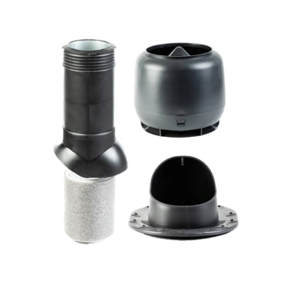 Комплект "Мастер Флеш" для фальцевой кровли D125/160 H=500, утепленный имеет на нижней поверхности уплотнитель из специальной долгостареющей резины, который обеспечивает при фиксации Проходного элемента к крыше саморезами стопроцентную герметичность соединения с кровлей.
