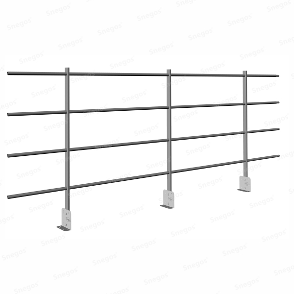 | Комплект поставки | 1. Опора ограждения – 3 шт 2. Крепежная стойка — 3 шт. 3. Трубка ограждения 3000мм – 4 шт 4. Прокладка резиновая под саморез – 12 шт 5. Болт М8х16 – 6 шт 6. Гайка М8 – 6 шт 7. Шайба М8 – 6 шт 8. Шайба Гровера М8 – 6 шт 9. Саморез с шестигранной головкой остр. 8х60 – 12 шт 10. Паспорт – 1 шт |